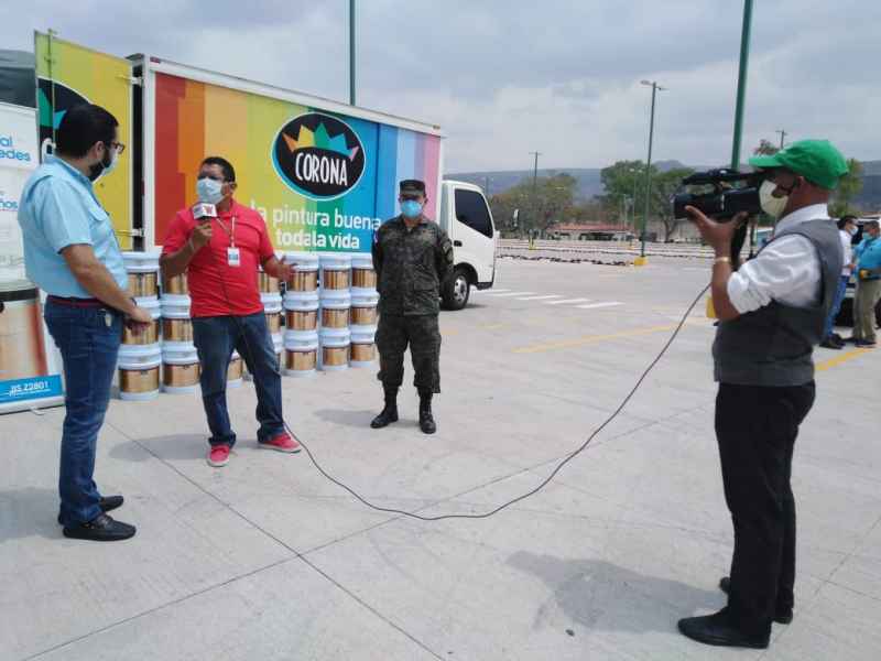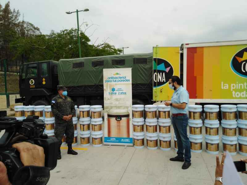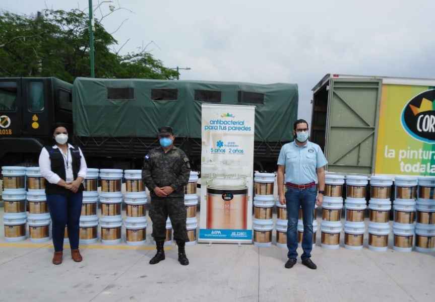 La donación se dividió en dos partes, la primera entrega de 250 galones que se realizó el día de hoy en el Campo de Parada Marte del Estado Mayor Conjunto en la ciudad de Tegucigalpa y contó con la presencia de representantes de Pinturas Corona y autoridades de las Fuerzas Armadas de Honduras. Los otros 250 galones estarán destinados a la sala de cuidados intensivos del Hospital General del Sur y otros proyectos de salud en todo el país.